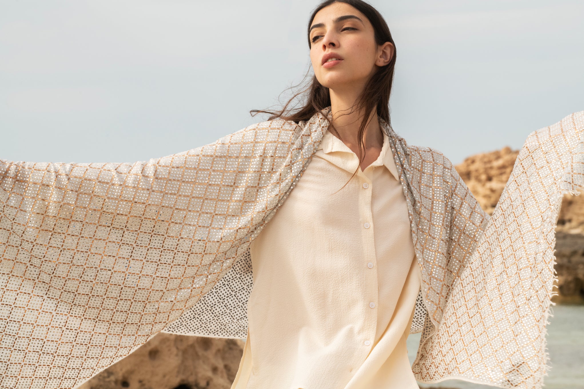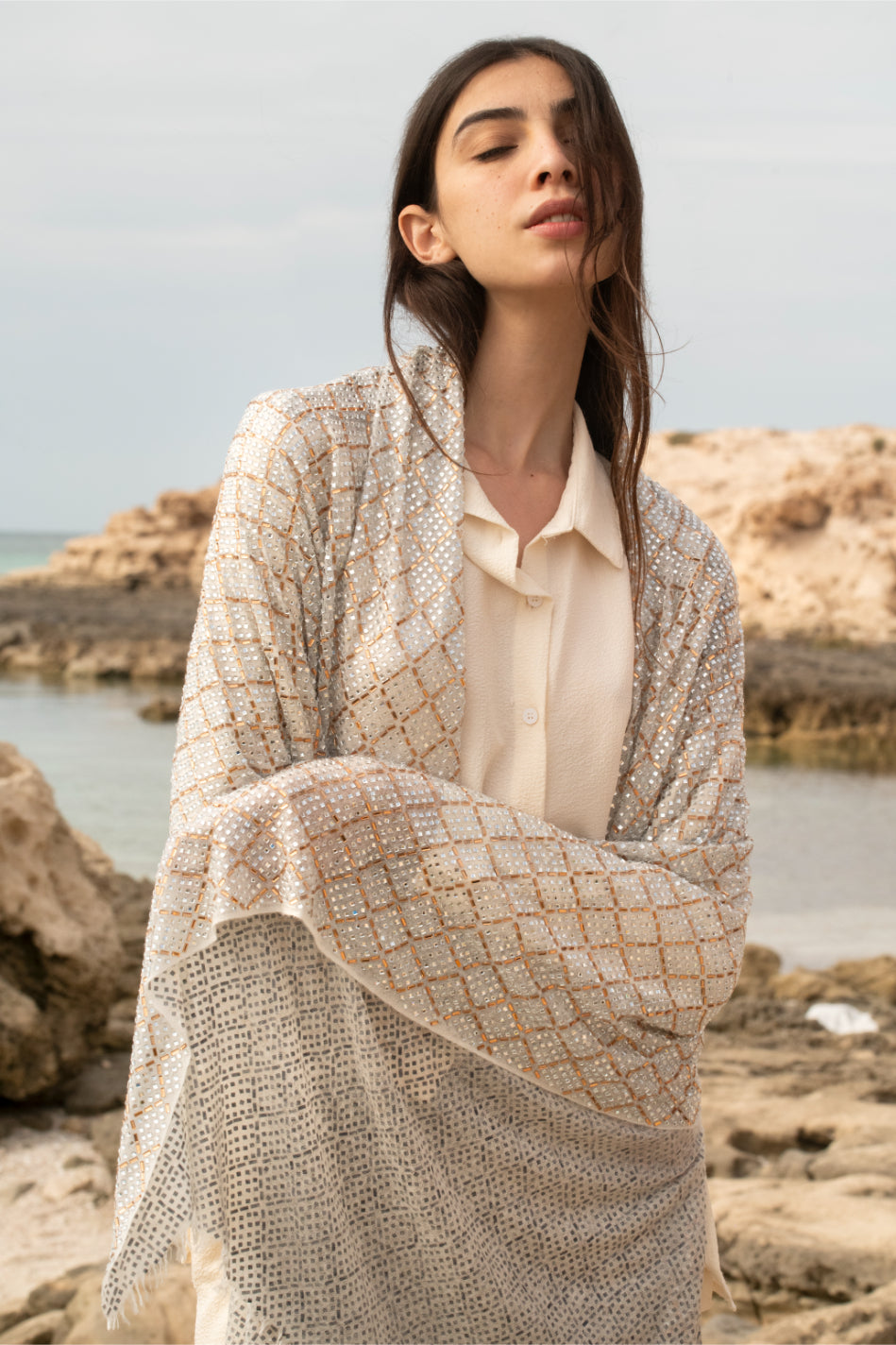 Radiant Harmony Crystal Embellished Knitted Cashmere Shawl